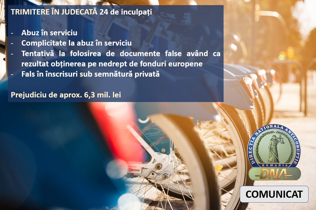 Procurorii Direcției Naționale Anticorupție au trimis în judecată 24 de funcționari publici pentru tentativă de fraudă cu fonduri europene, abuz în serviciu pentru obținerea unor foloase și fals în înscrisuri. Prejudiciul estimat se ridică la suma de 6,3 milioane de lei, se arată în comunicatul DNA.