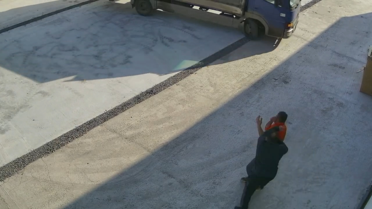 Incidentul care s-a petrecut lângă un depozit a fost filmat de o cameră de supraveghere.
