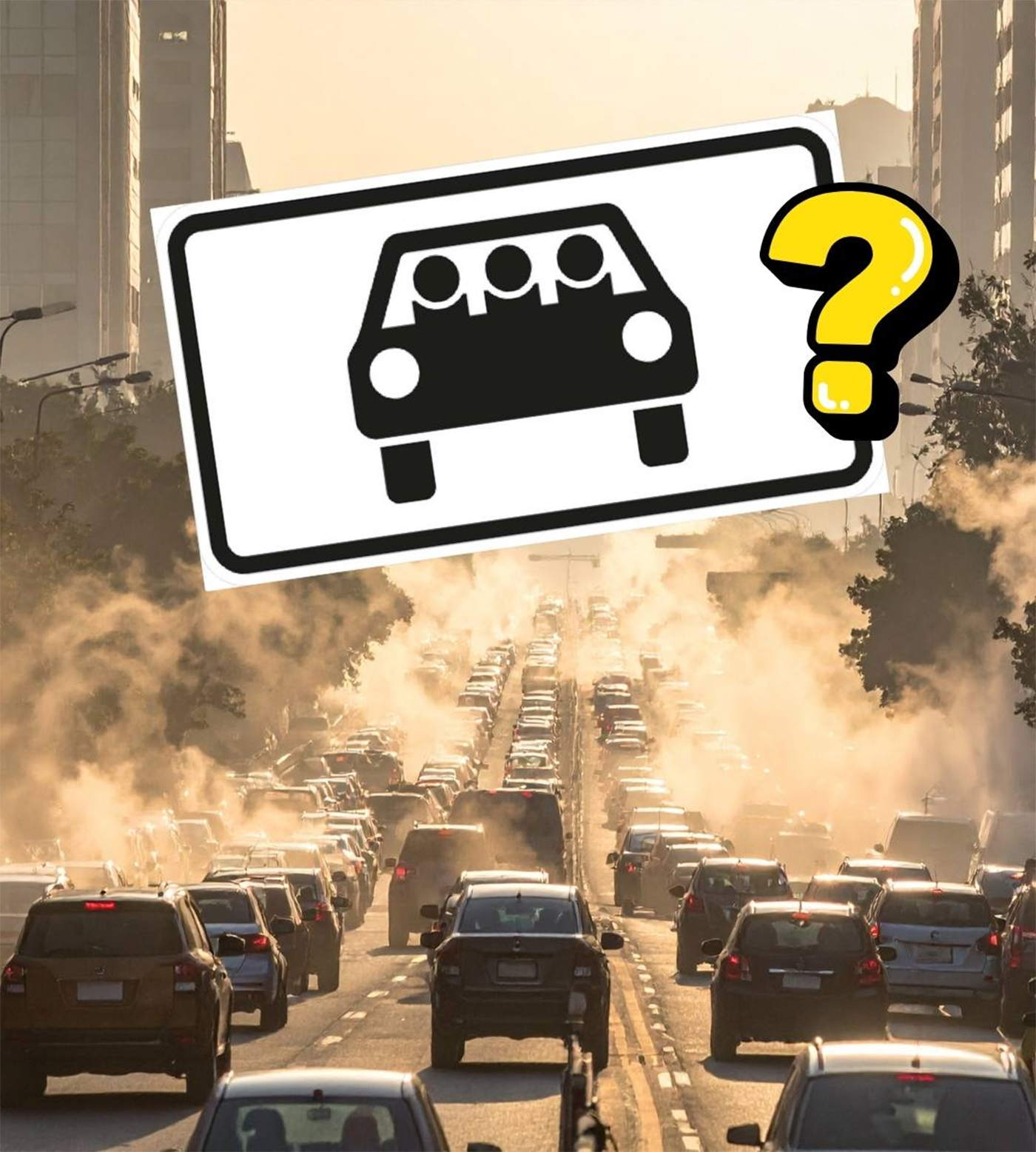Un indicator rutier care înfățișează o mașină cu trei ocupanți există încă din 2020. Cu toate acestea, este rar întâlnit în traficul zilnic. Motivele pentru care este rar utilizat și semnificația sa rămâne în continuare pentru unii o sursă de confuzie.