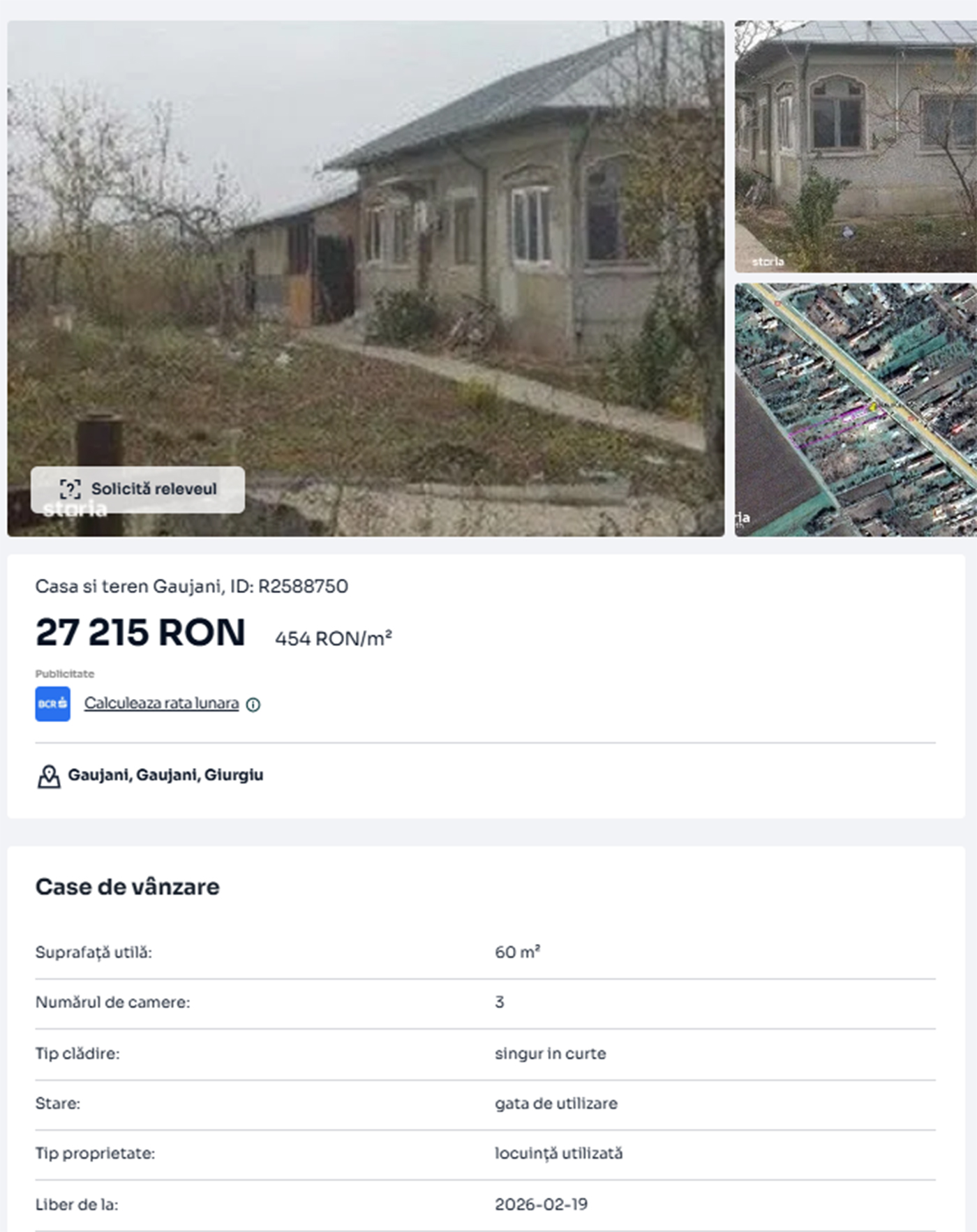 Cea mai ieftină casă din România costă doar 5.300 de euro și se află aproape de București, într-o localitate din județul Giurgiu.
