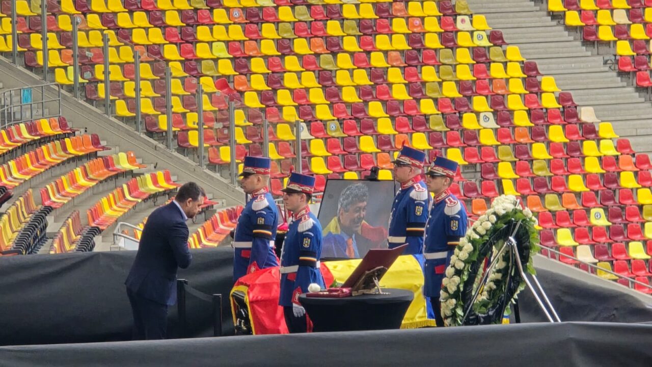 Ciprian Ciucu a venit pe Arena Națională ca să-i aducă un ultim omagiu lui Mircea Lucescu. Primarul Capitalei s-a prezentat la stadion în jurul orei 13:10 cu o coroană de flori specială, în formă de minge de fotbal așezată pe o bucată de gazon.