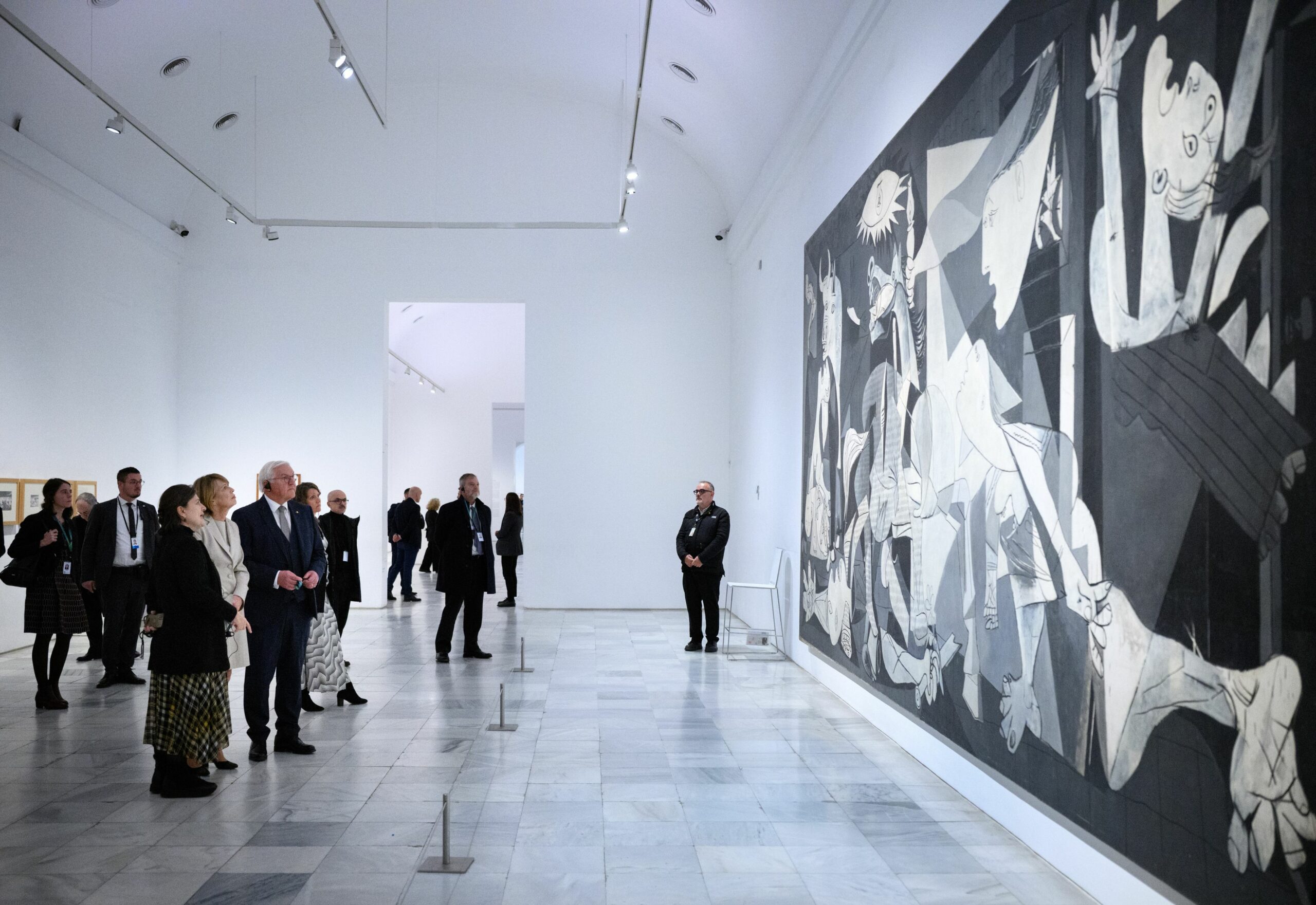 Este vorba de pictura de artă cubistă „Guernica”, realizată de Pablo Picasso în 1937. Considerată cea mai populară formă de artă anti-război, pictura ilustrează bombardarea orașului Guernica din 26 aprilie 1937.