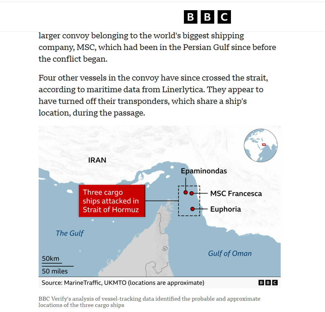 Al treilea vas, numit „MSC-Francesca”, a fost vizat de atacurile forțelor navale iraniene comandate de Garda Revoluționară Iraniană.