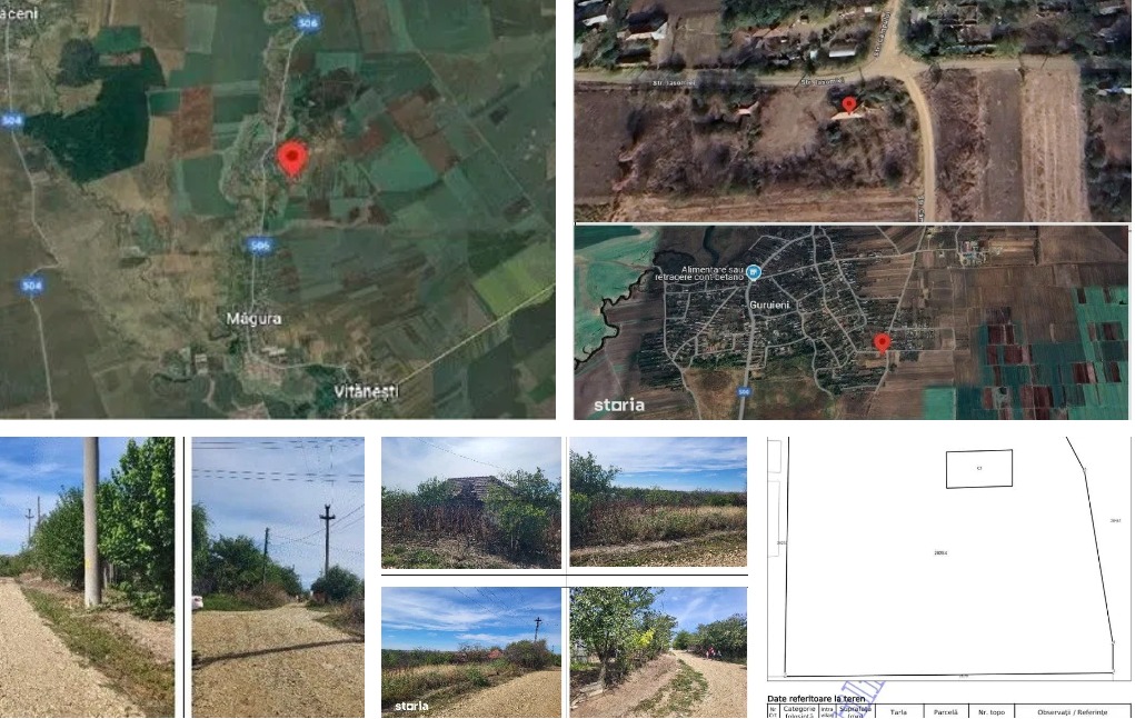 Teren intravilan în suprafata de 2198mp, având categoria de folosința a curti constructii în suprafață de 1139mp și arabil în suprafață de 1139mp, se prezintă proprietatea.