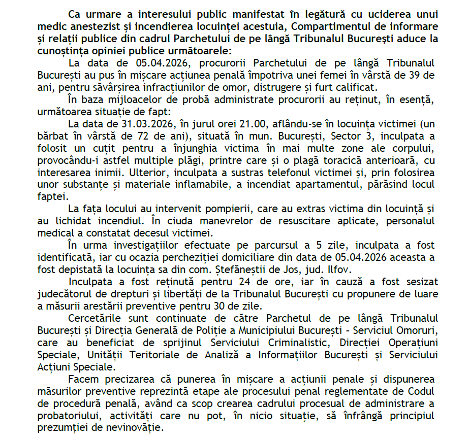 Sursa: https://www.gandul.ro/actualitate/rasturnare-de-situatie-in-cazul-medicului-cristian-staicu-ucis-si-incendiat-in-propriul-apartament-ce-motiv-a-invocat-femeia-care-a-recunoscut-crima-20852621