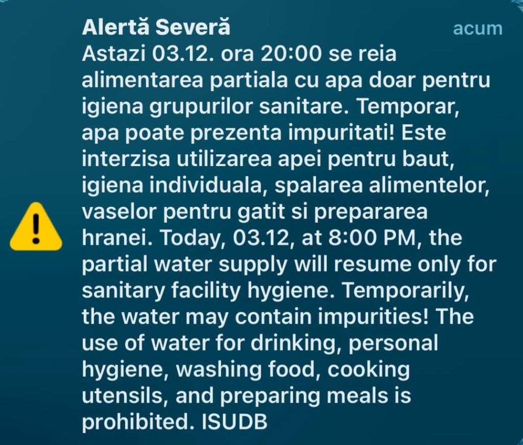 În decizie se arată că „se interzice utilizarea apei livrate pentru băut, igienă individuală (spălarea mâinilor, spălarea corpului), spălarea fructelor, legumelor, spălarea vaselor și gătit.