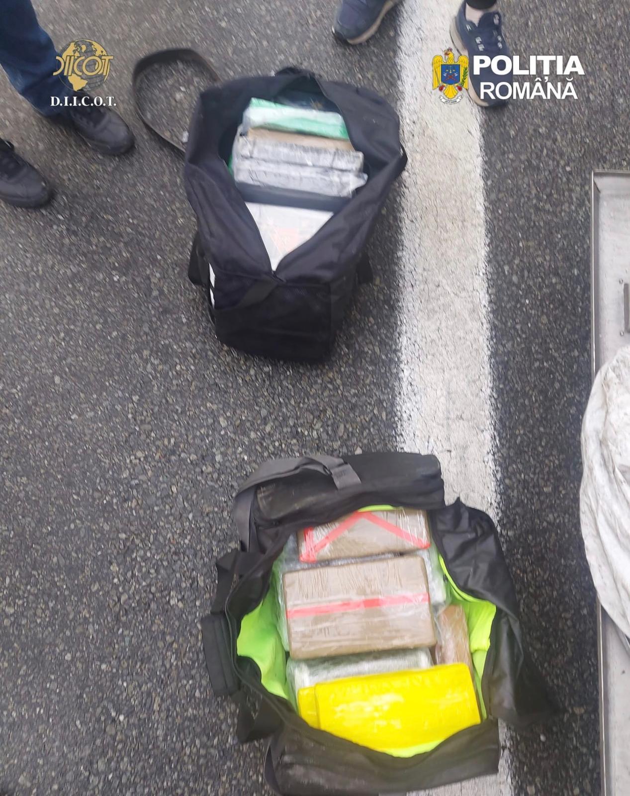 Marfa interzisă era mpărțită în 33 de pungi și a fost găsită în interiorul capului tractor, depozitată în două genți.