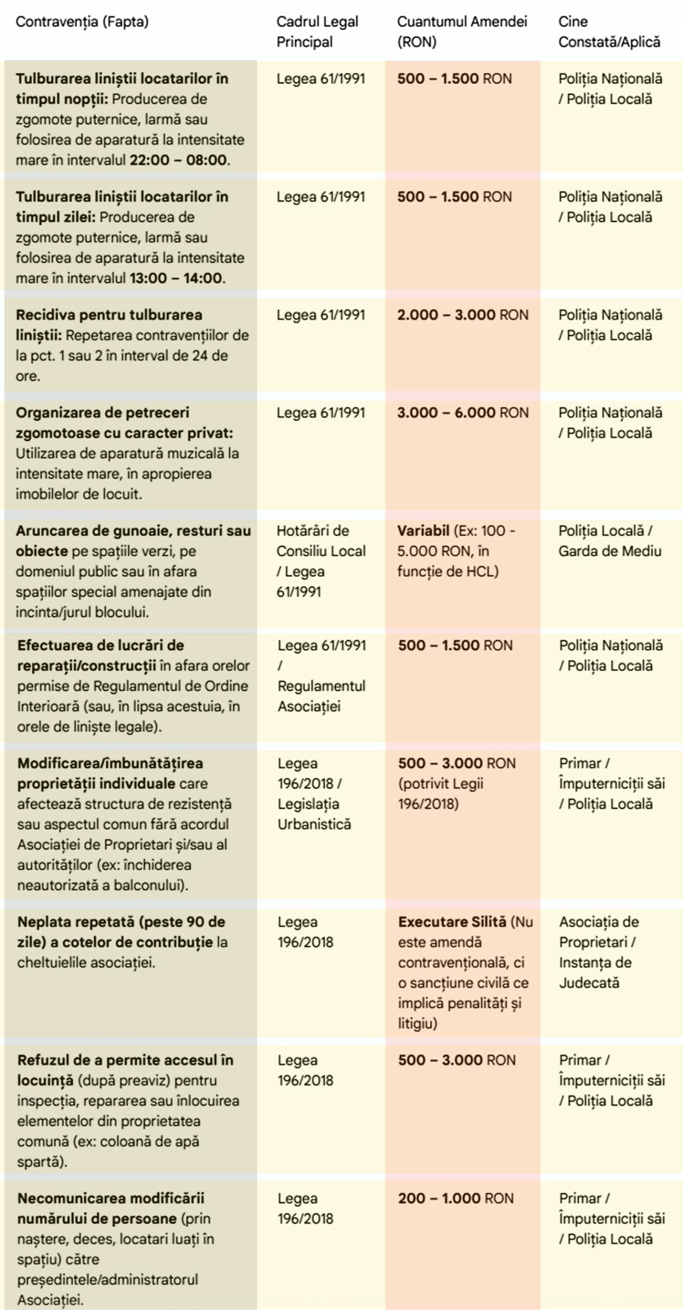 Sursa: https://www.gandul.ro/actualitate/tabel-amenzi-care-sunt-cele-mai-ciudate-amenzi-pentru-romanii-care-locuiesc-la-bloc-greseala-care-te-poate-costa-6-000-lei-20737255