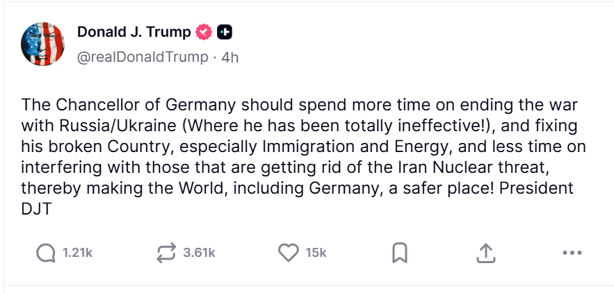 Trump i-a transmis lui Merz să-și „repare” țara, să încheie mai repede războiul din Ucraina și să se preocupe mai puțin de Iran