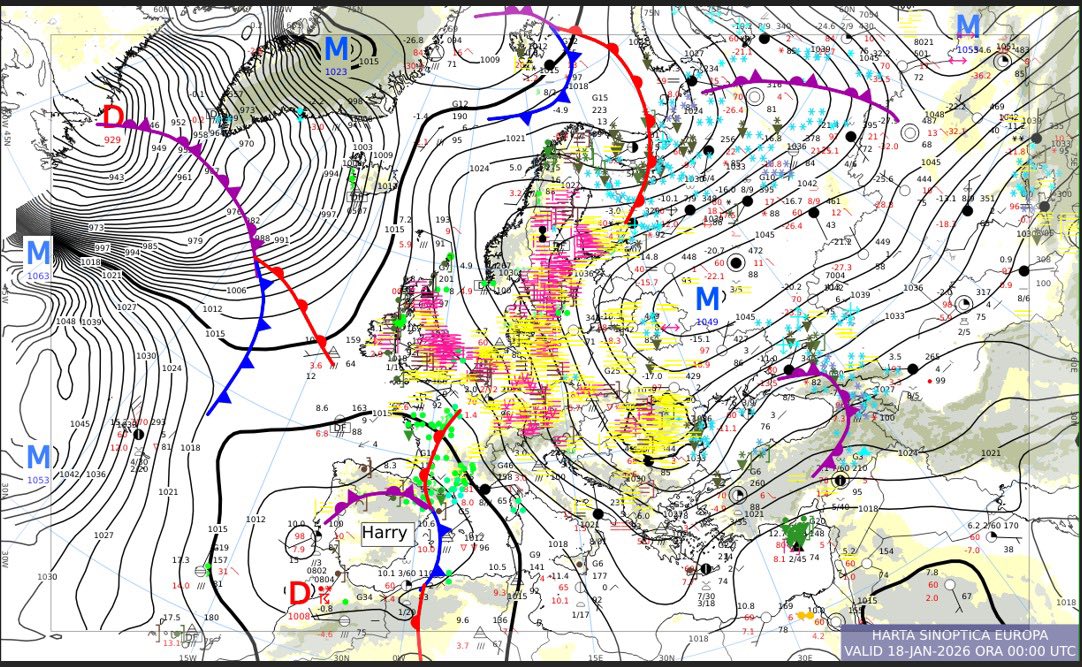 Administrația Națională de Meteorologie anunță că o masă de aer caldă provenită dinspre sud, asociată unui nou ciclon generat deasupra Mării Mediterane, se va ciocni cu aerul polar-arctic rece, pre-existent de la est și nord-est, legat de anticiclonul est-european.