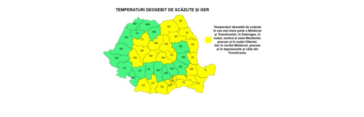 Meteorologii au emis o versiune actualizată a informării meteorologice, valabilă în intervalul 19 ianuarie, ora 10:00 – 22 ianuarie, ora 10:00. Noua alertă include fenomene extreme pe lângă gerul persistent.
