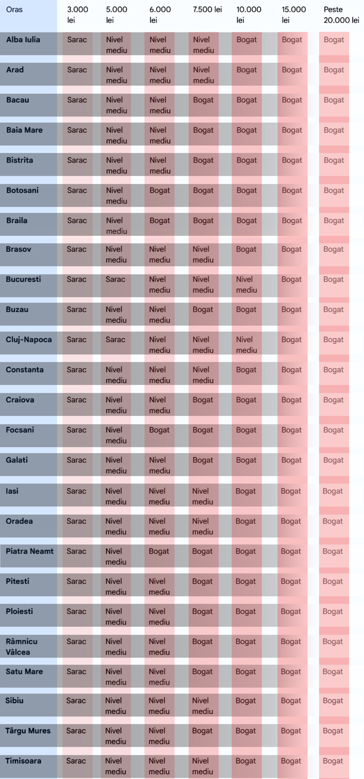 Bogat sau sărac? Cum ești în funcție de venitul tău și de orașul în care locuiești