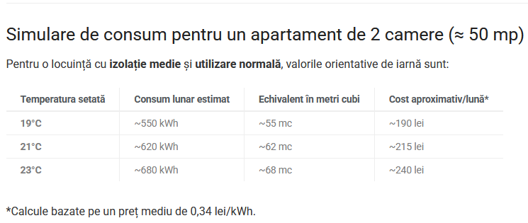 Așadar, fiecare grad în plus peste 19°C crește factura cu 6–8%.