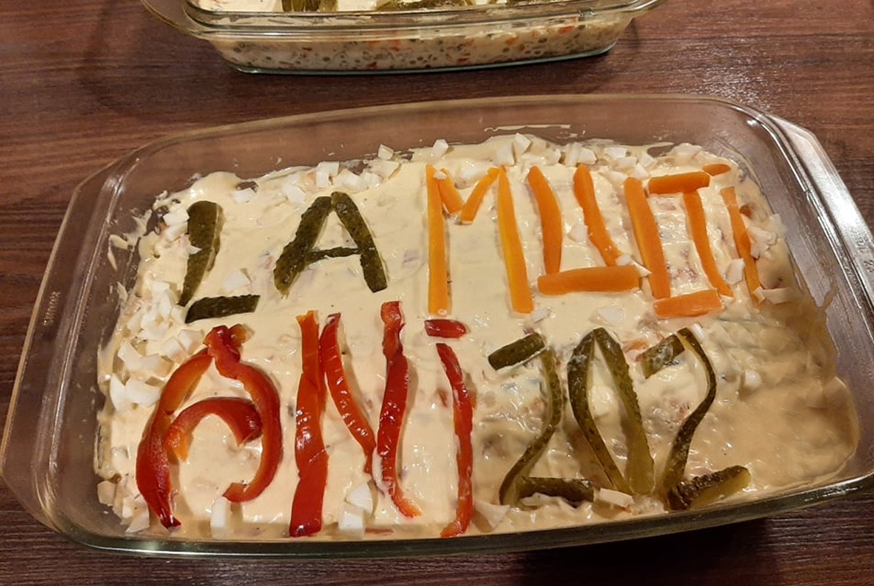 Salata de boeuf a devenit un preparat popular pentru sărbătorile de iarnă. Bucătăresele se întrec care mai de care să o orneze cât mai frumos, însă asta nu s-a întâmplat și în cazul unei românce care a gafat decorul. Femeia a uitat să pună ultima cifră din „2026”.