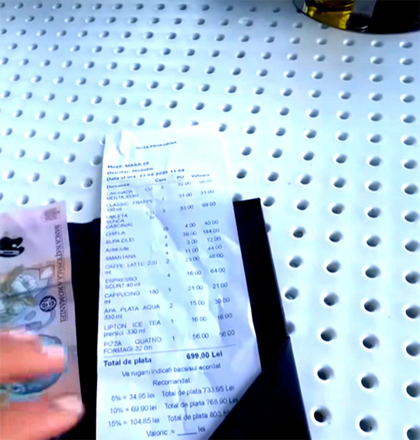 Cum a reacționat acest chelner după ce a primit doar 10 lei BACȘIȘ, la o notă de plată de 699 lei: „Măi fraților, ați ieșit și voi”