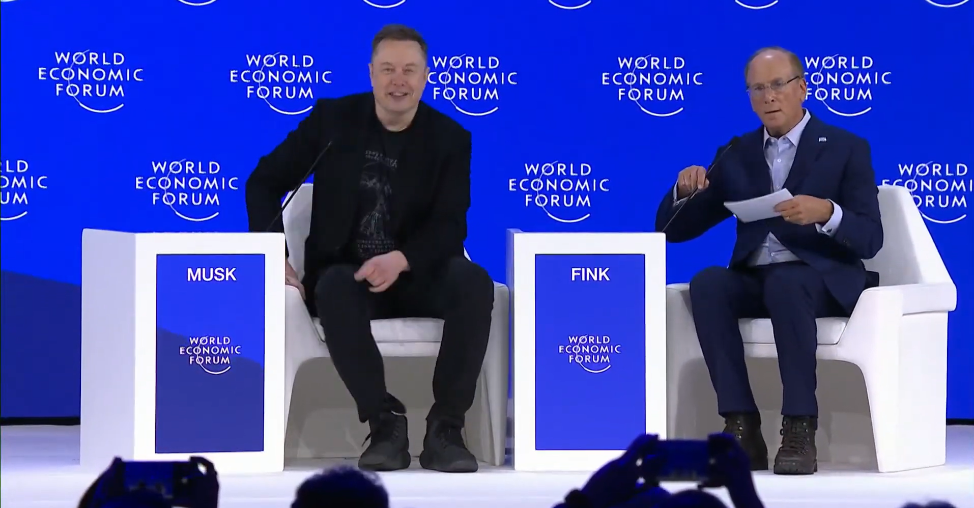 Elon Musk a avut o apariție surpriză la Forumul Economic Mondial de la Davos, fiind prima sa participare oficială la acest eveniment după ani de critici vehemente la adresa acestui summit. Musk a fost adăugat în program ca vorbitor în ultimul moment într-un panel de discuții alături de Larry Fink, CEO-ul BlackRock. În cadrul sesiunii sale de la Davos, Musk a abordat o serie de teme vizionare și geopolitice. Apariția a marcat o schimbare de atitudine față de Forumul de la Davos, despre care spunea în anii trecuți că este un eveniment plictisitor și un „guvern mondial neales”.