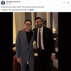 Alexander Soros, fiul lui George Soros, a salutat pe rețelele de socializare rezultatul alegerilor din New York și a transmis un mesaj de susținere pentru Zohran Mamdani, noul primar ales al orașului.