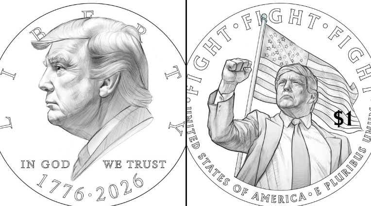 Proiectul de design al monedei, realizat sub supravegherea trezorierului SUA, Brandon Beach, îl prezintă pe Trump în profil, pe o parte a monedei. Pe cealaltă parte apare o imagine a președintelui cu pumnul strâns, în fața drapelului american, alături de cuvintele „FIGHT, FIGHT, FIGHT” („Luptați”).