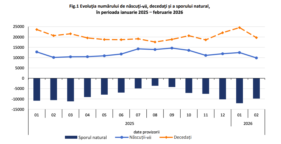 România pierde oameni într-un ritm alarmant. Datele INS arată un dezechilibru grav între viață și moarte. În luna februarie 2026, aproape 10.000 de copii au venit pe lume. În același timp, aproape 20.000 de oameni au murit.
